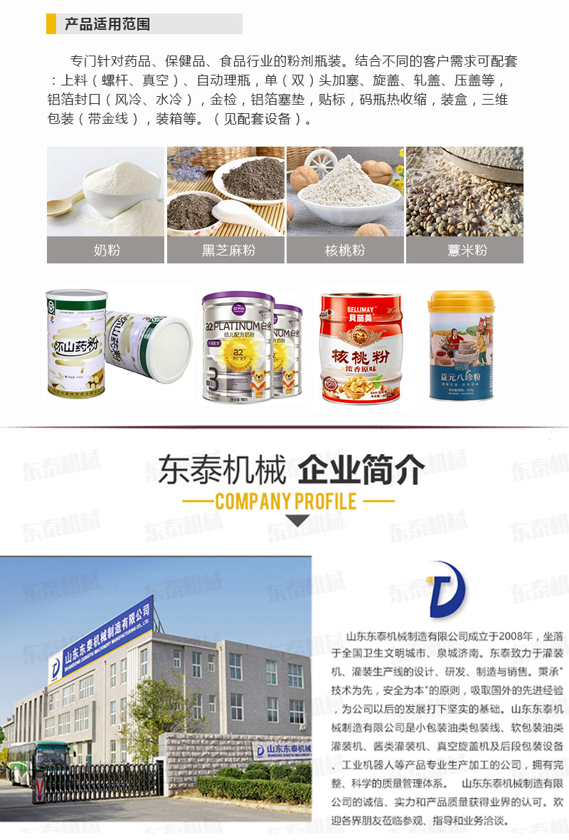 全自動粉劑灌裝機(jī)適用范圍