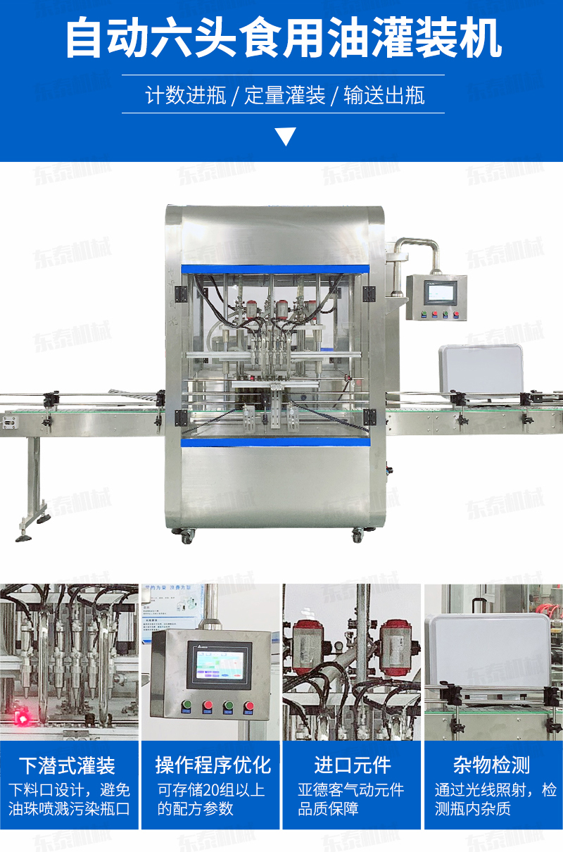 6、采用下潛式灌裝,在桶口以內(nèi)約5-8mm 處進行灌裝,避免了灌裝速度快產(chǎn)生細小油珠噴濺污染瓶口的現(xiàn)象產(chǎn)生。配合多段式快慢速灌裝,可以保障高速灌裝時全速灌裝,又可有效解決氣壓過高快速灌裝時泡沫溢瓶現(xiàn)象,自我保護更安全,穩(wěn)定,延長設(shè)備使用壽命。