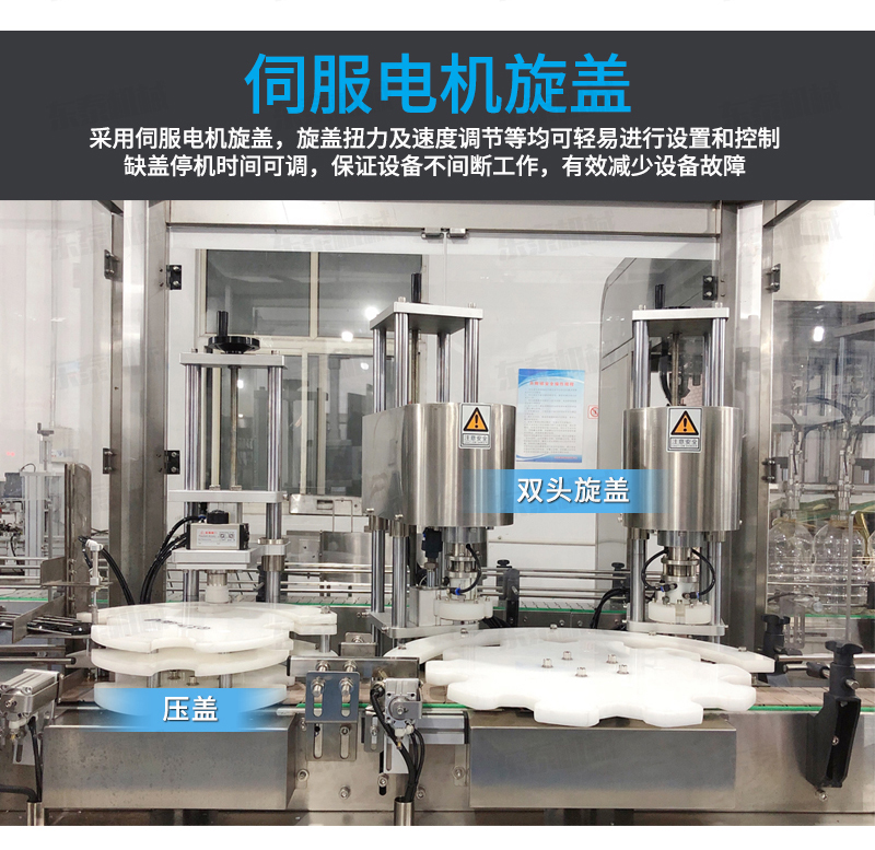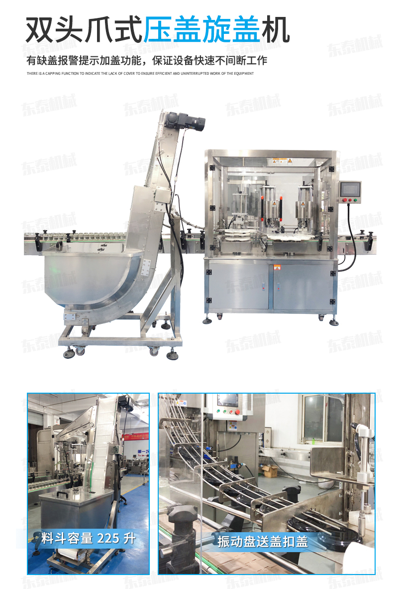 該枇杷膏灌裝機生產(chǎn)線-上蓋機結(jié)合用戶使用的情況,摒棄了傳統(tǒng)轉(zhuǎn)盤式真空旋蓋機的弊端,研制開發(fā)的新型設備,設備自動檢測到設定數(shù)量的瓶子、蓋子進入到真空旋蓋機內(nèi),旋蓋機彩色顯示屏會實時顯現(xiàn)旋蓋狀況,整機多點檢測,當進口無瓶無蓋、出口堵塞、定位不準、瓶身傾倒均自動停機。單個旋蓋頭達到的真空度都可以單獨顯示,單獨調(diào)整。合格率達到100%!