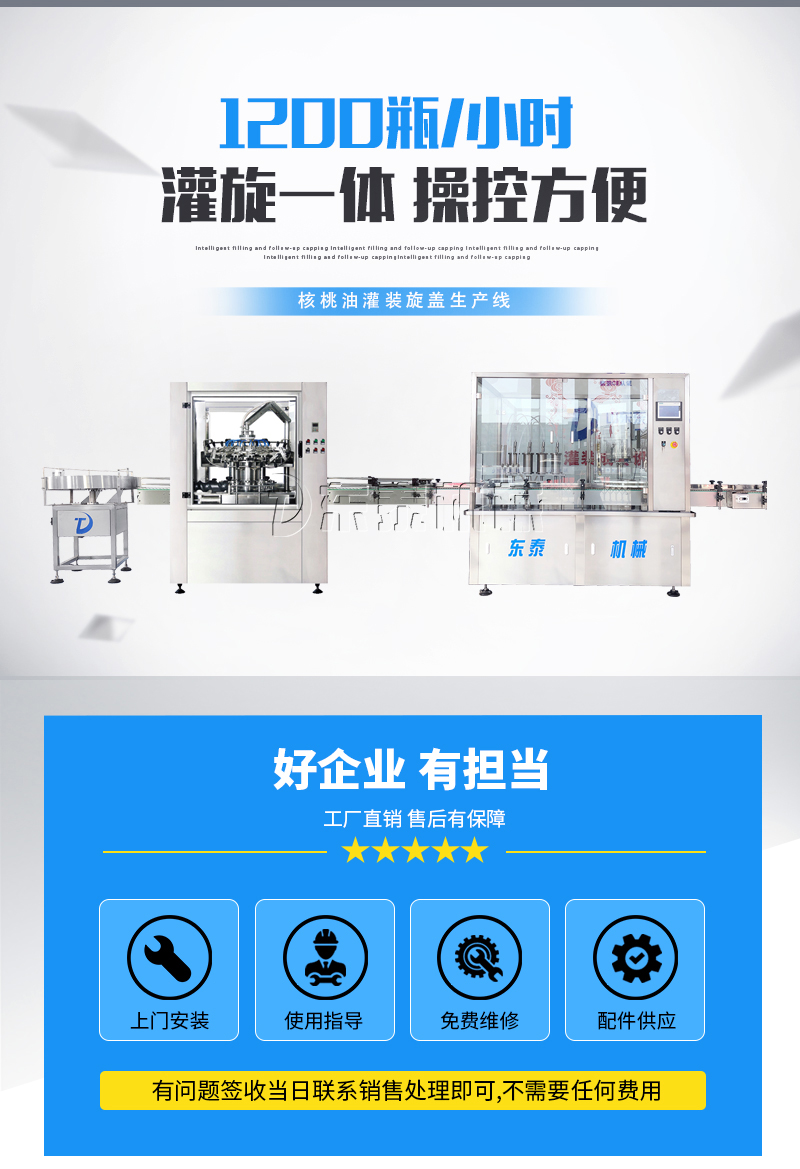 本灌裝流水線設備具有穩(wěn)定可靠、自動化水平高,相比同類產(chǎn)品有著更長的使用年限,維護簡單,整線中各設備的協(xié)調(diào)性、連貫性強,整線設計合理等特點。灌裝設備采用獨家專利系統(tǒng)結構,為當今行業(yè)內(nèi)水平,整