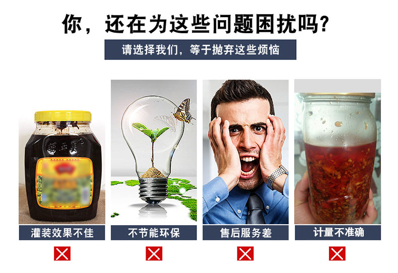 此款醬類灌裝機為觸摸屏操作,由PLC控制,自動化程度高。主要適用于番茄醬、甜面醬、沙拉醬等醬類的灌裝。