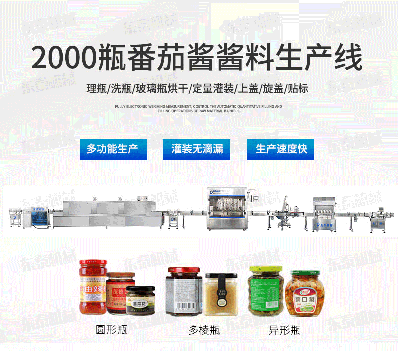 為了能夠更好的服務(wù)社會(huì)我們東泰辣椒醬灌裝機(jī)踏上了多樣化生產(chǎn)道路,并且現(xiàn)在已經(jīng)有了一定的顯著成績(jī),原來(lái)的傳統(tǒng)設(shè)備由于功能有所局限,只能灌裝普通的醬料,而經(jīng)過(guò)我們改進(jìn)后的全自動(dòng)辣椒醬灌裝機(jī)能夠?qū)崿F(xiàn)對(duì)市場(chǎng)上絕大多數(shù)的醬料的灌裝,尤其是那些含顆粒的顆粒漿狀流體、半流體、膏體、漿狀類(lèi)的物料灌裝,如辣椒醬、牛肉醬、牛肉大醬、豆瓣醬、芝麻醬、果醬、火鍋底料的等物料的灌裝,在市場(chǎng)中,辣椒醬灌裝機(jī)有眾多的機(jī)會(huì)來(lái)展現(xiàn)出自我的風(fēng)采,不僅是因?yàn)樵偈袌?chǎng)中的廣泛應(yīng)用,還有這十分出眾的全自動(dòng)化的一鍵式的完成一系列的工作流程,更能夠凸顯出市場(chǎng)對(duì)于它自身的需求。